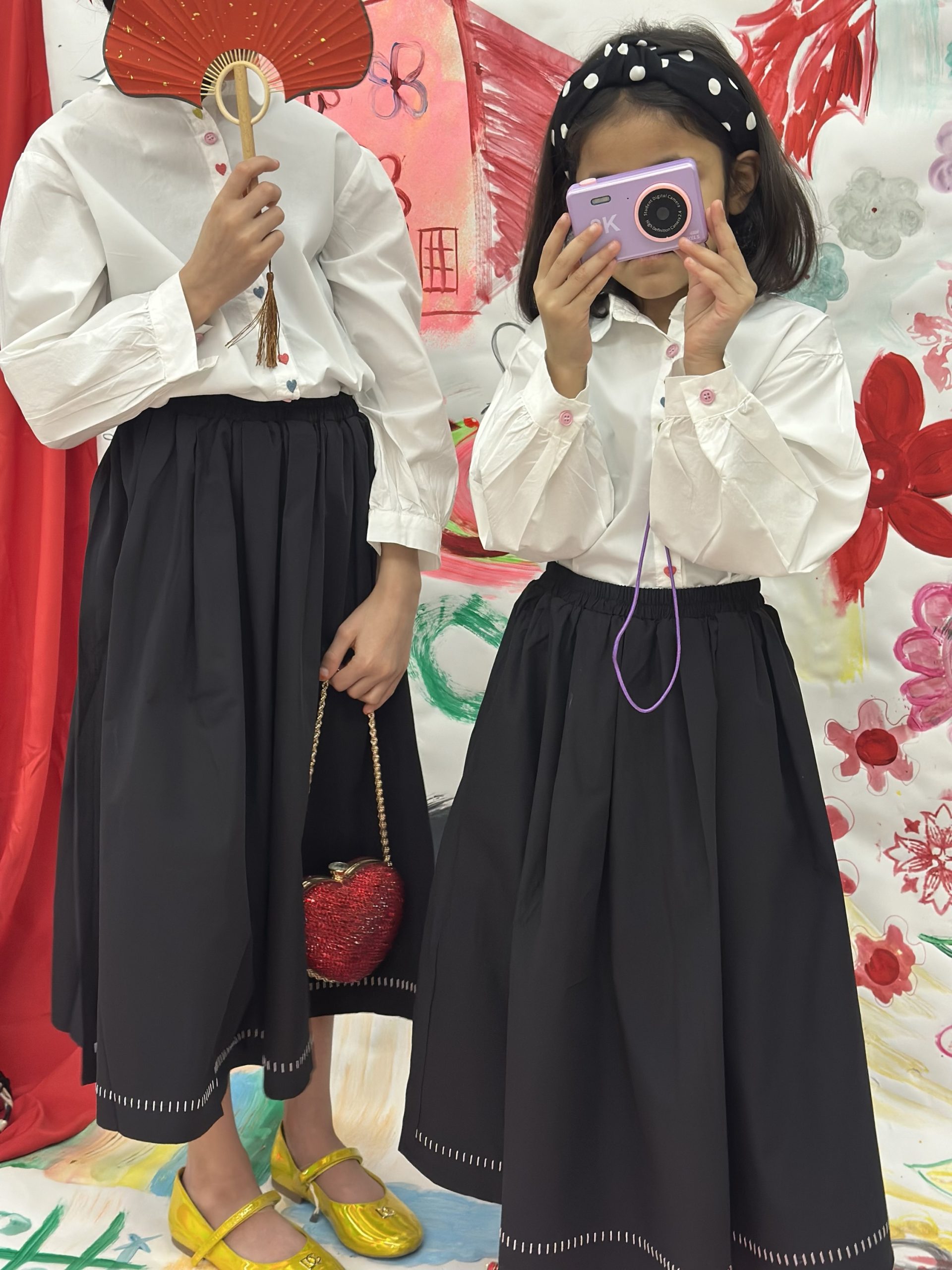 عباره عن قميص مطرز وتنوره بخطوط مصنوعه يدويا