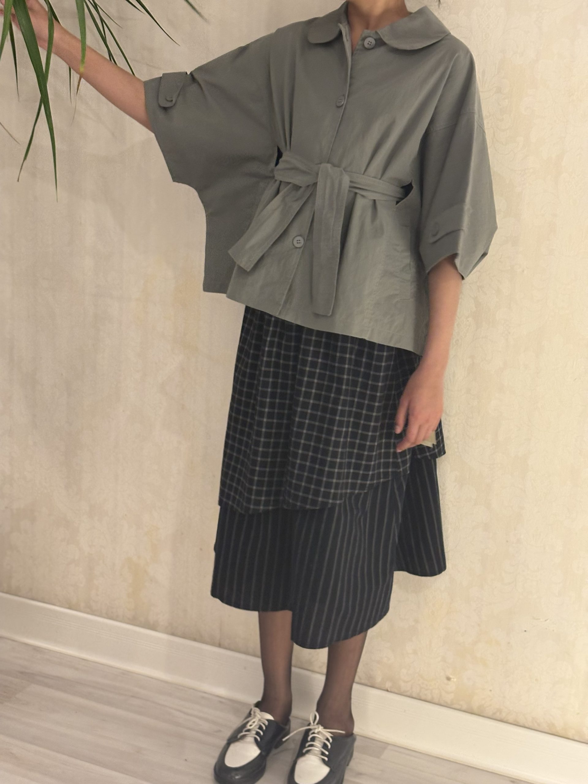 عباره عن كيب بقصه واسعه مع حزام والتحكم في الوسع